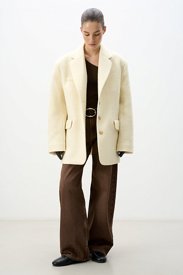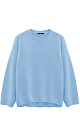 Knitted jumper made of 100% cotton. Loose silhouette model with dropped shoulders and a round neckline. The edges of the product are ribbed. You can complement the look with a skirt.