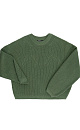 Knitted jumper made of 100% cotton with decorative pleats on the chest and collar. model of a loose silhouette with dropped shoulders and a round neckline. The cuffs of the sleeves and the bottom of the product are made with elastic elastic.