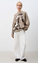Knitted jumper made of wool and cashmere. Loose silhouette with dropped shoulders, round neckline and jacquard animal print of a horse. The edges of the product are ribbed.