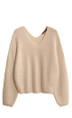 Knitted jumper made of fox down. The model has a loose silhouette with dropped shoulders and a V-shaped neckline. The look can be complemented with a skirt in the same style.