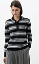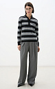Striped wool knitted jumper. The model has a loose silhouette, long sleeves, a polo collar with buttons and a branded jacquard on the chest. The cuffs, collar and hem of the product are ribbed.