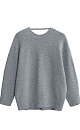 Knitted jumper made from bouclé yarn. Loose silhouette model with long sleeves and a deep cutout at the back. The edges of the product are ribbed. You can complement the look with a skirt in the same style.