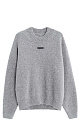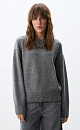 Voluminous jumper made of wool with the addition of cashmere. Loose silhouette model with dropped shoulders. The collar is made with purl loops in a wide rib. The cuffs of the sleeves and the bottom of the product are with elastic. The jumper is decorated with a branded knitted label.