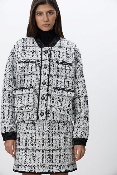 Knitted long-sleeve made of kidmohair, decorated with small sequins. Model with a round neckline with a button placket. The edges of the product are decorated with a roller.