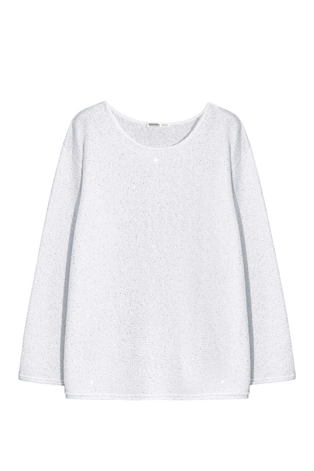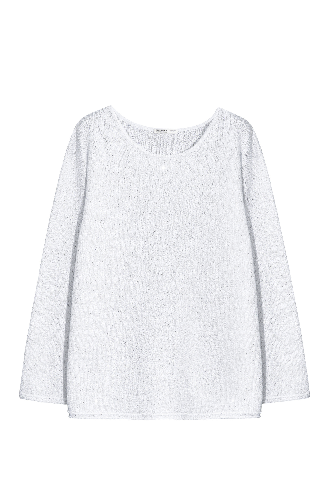 Knitted cotton jumper with sequins and lurex. Loose silhouette model with long sleeves and a round neckline.
