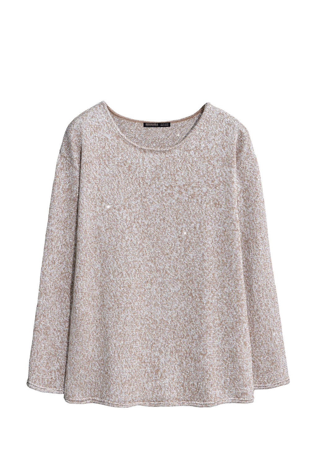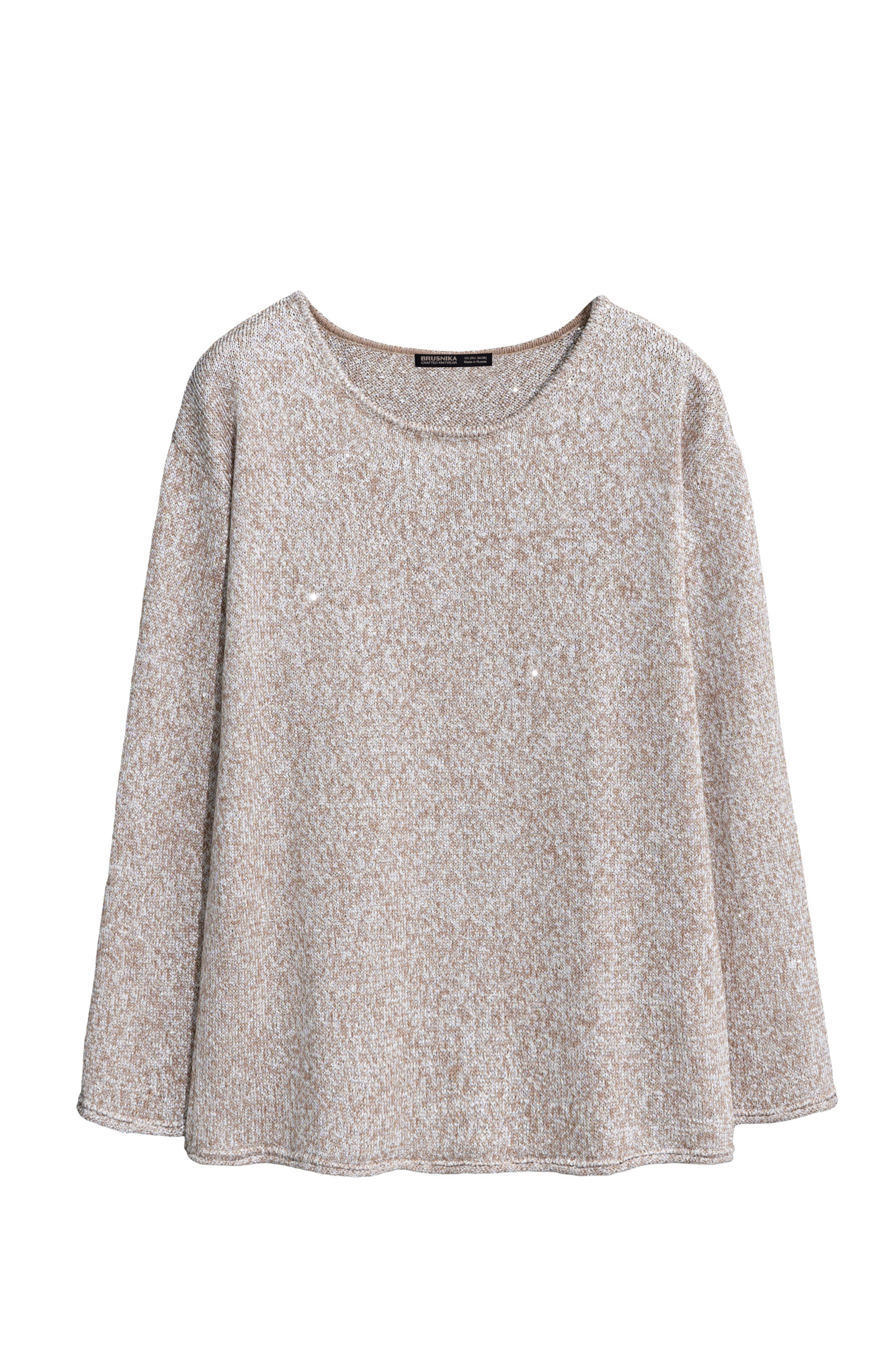 Knitted cotton jumper with sequins and lurex. Loose silhouette model with long sleeves and a round neckline.