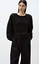 Knitted jumper made of viscose with the addition of lurex. Loose silhouette model with a round neckline and dropped shoulders.