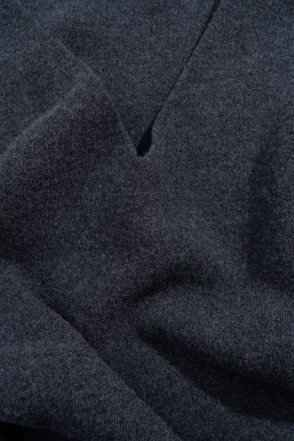 Knitted jumper made of wool with the addition of cashmere. The model has a loose silhouette with dropped shoulders and a V-shaped neckline. The sleeve cuffs and hem are ribbed.