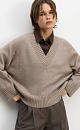 Knitted jumper made of merino wool with lurex. Loose silhouette model with V-neck.