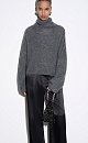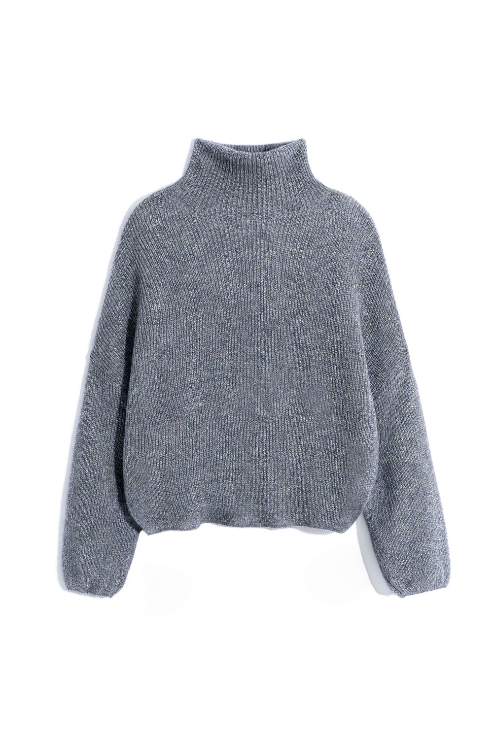 Knitted jumper with lurex. A shortened model with a loose silhouette with dropped shoulders and a knitted collar.