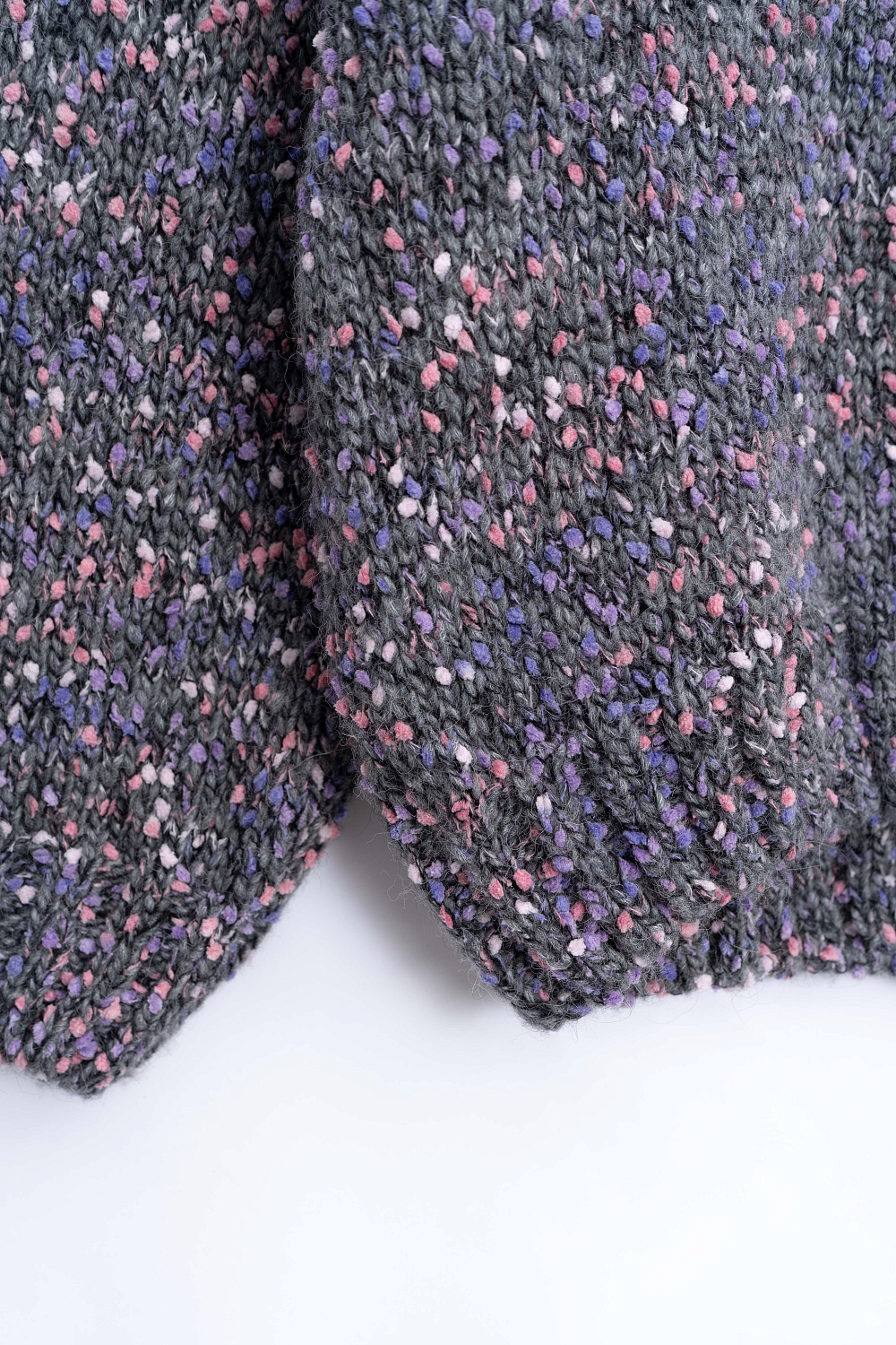 Bouclé alpaca wool jumper. Model of a loose silhouette with epaulette sleeves and a round collar. The bottom of the product, sleeve cuffs and collar are made with a wide rib.