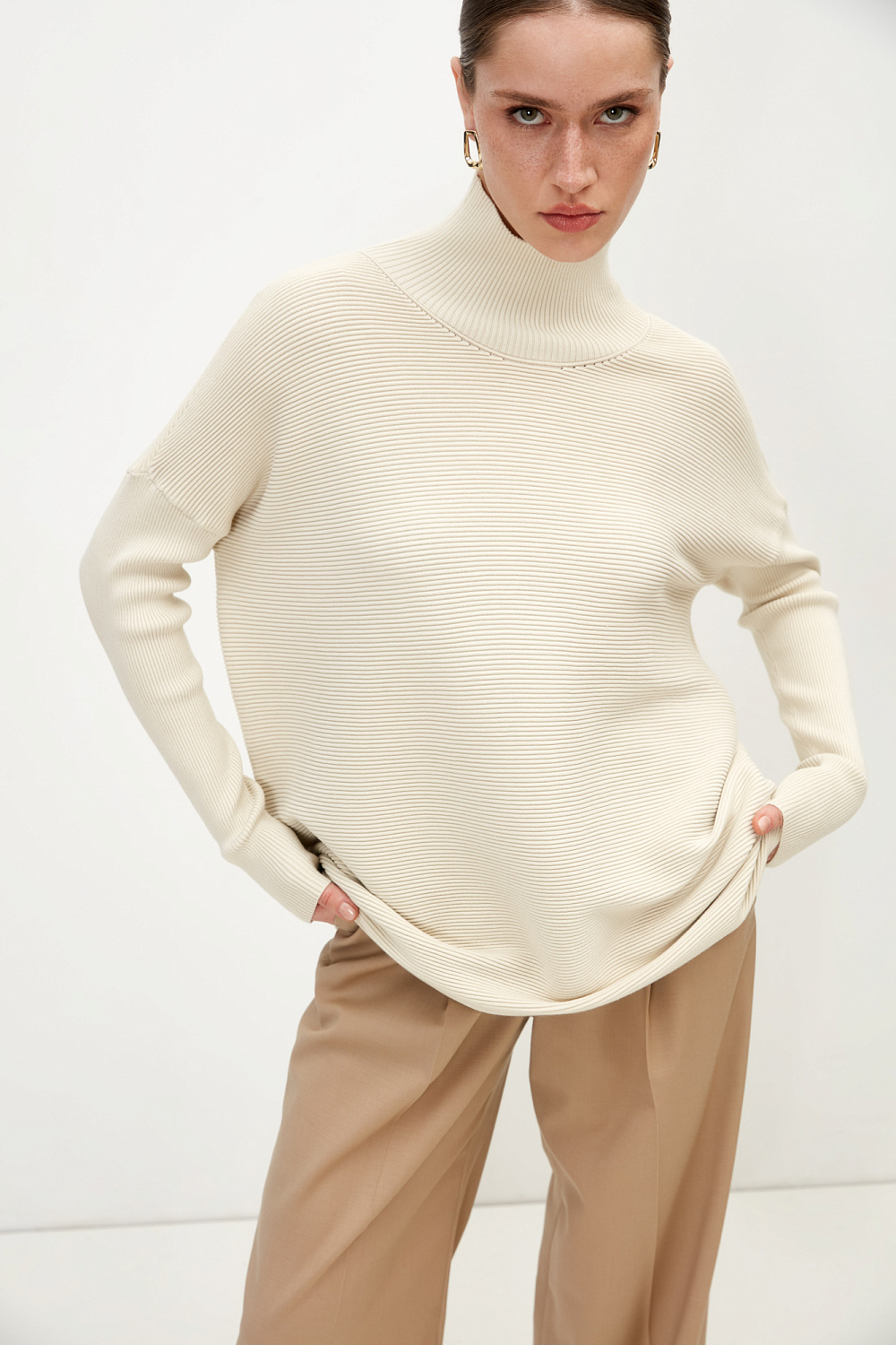 Textured knit jumper with a high neck, dropped shoulders and long sleeves.
