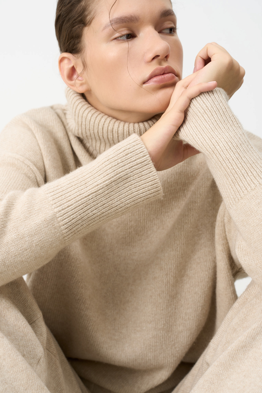Wool and cashmere blend turtleneck jumper with longline back. Pairs perfectly with matching pants.