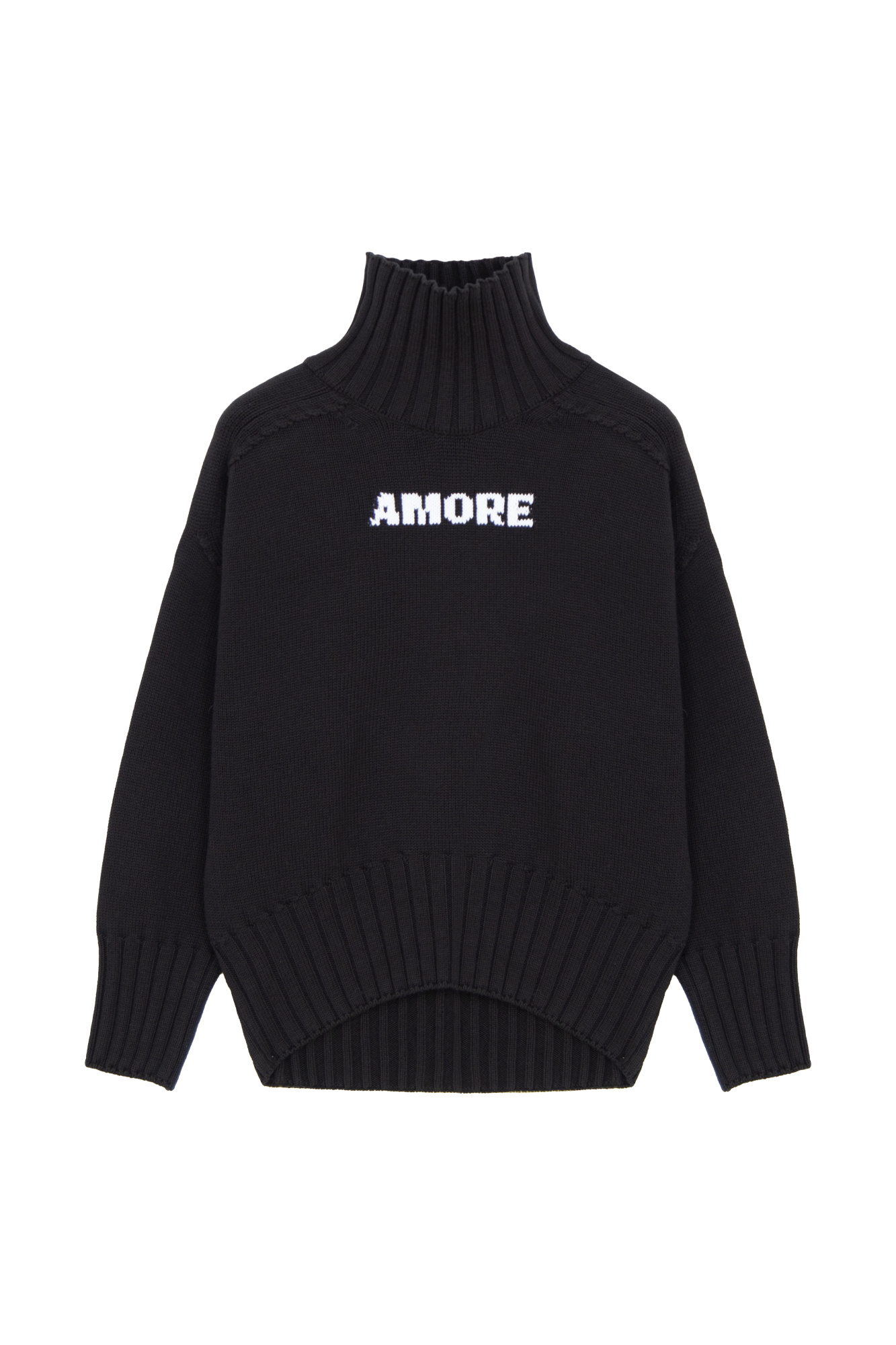 100% cotton knit jumper. Loose silhouette with a dropped shoulders, a high collar and the inscription “Amore”.