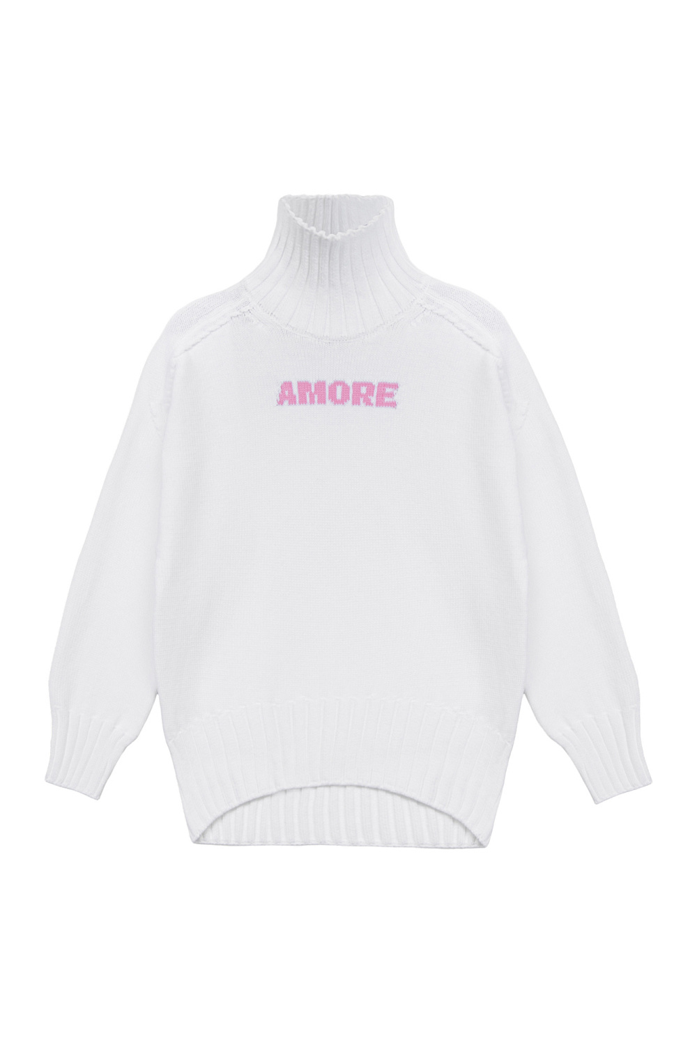 100% cotton knit jumper. Loose silhouette with a dropped shoulders, a high collar and the inscription “Amore”.