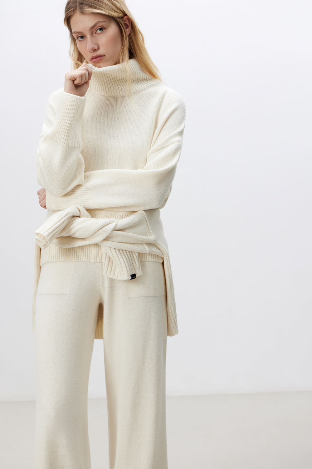 Alpaca wool jumper with a high collar, dropped shoulders and long sleeves. Ribbed cuffs and hem.