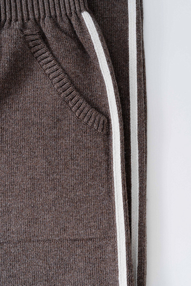 Wool blend knit jumper. Loose silhouette with stripes, a high collar and dropped shoulders. You can complete the look with matching pants.