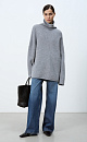Knitted jumper with a high neck. Model of a loose silhouette with a dropped shoulder line and decorative allowances.