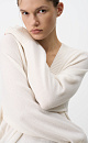 V-neck jumper made of 100% cashmere. Loose silhouette model with dropped shoulder line. The edges of the product are ribbed.