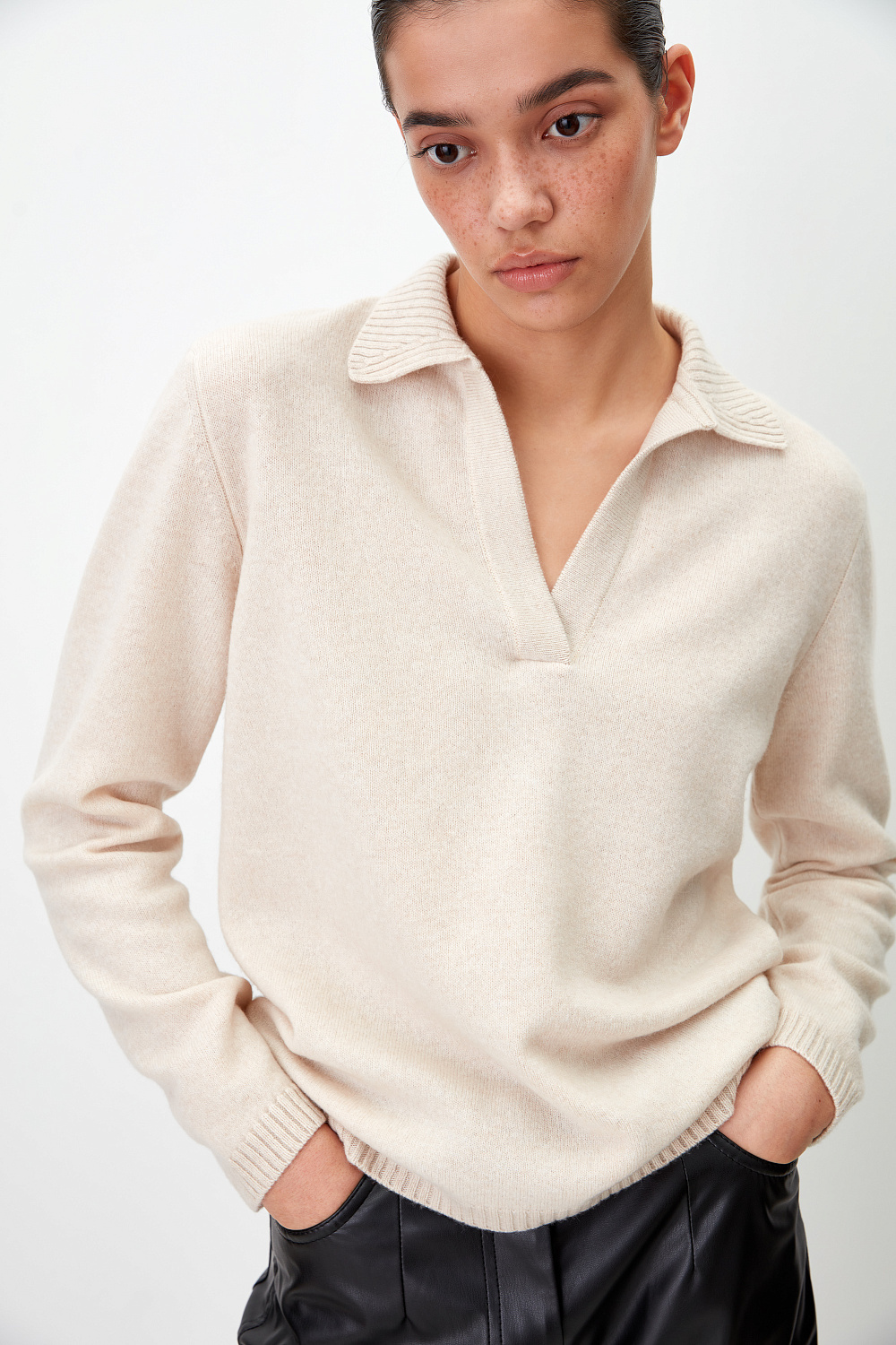100% cashmere jumper with polo collar