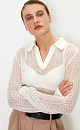 Openwork wool-mohair blend jumper with polo collar. The jumper is semi-sheer, we recommend wearing a top underneath. You can complete the look with a faux leather skirt.