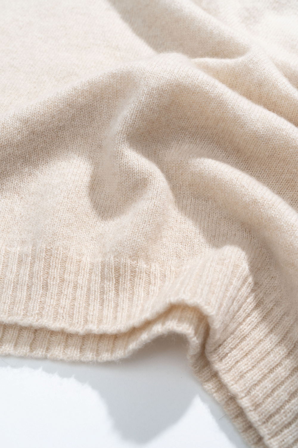 Knitted jumper made of 100% cashmere. Loose silhouette model with dropped shoulder line, ribbed edges.