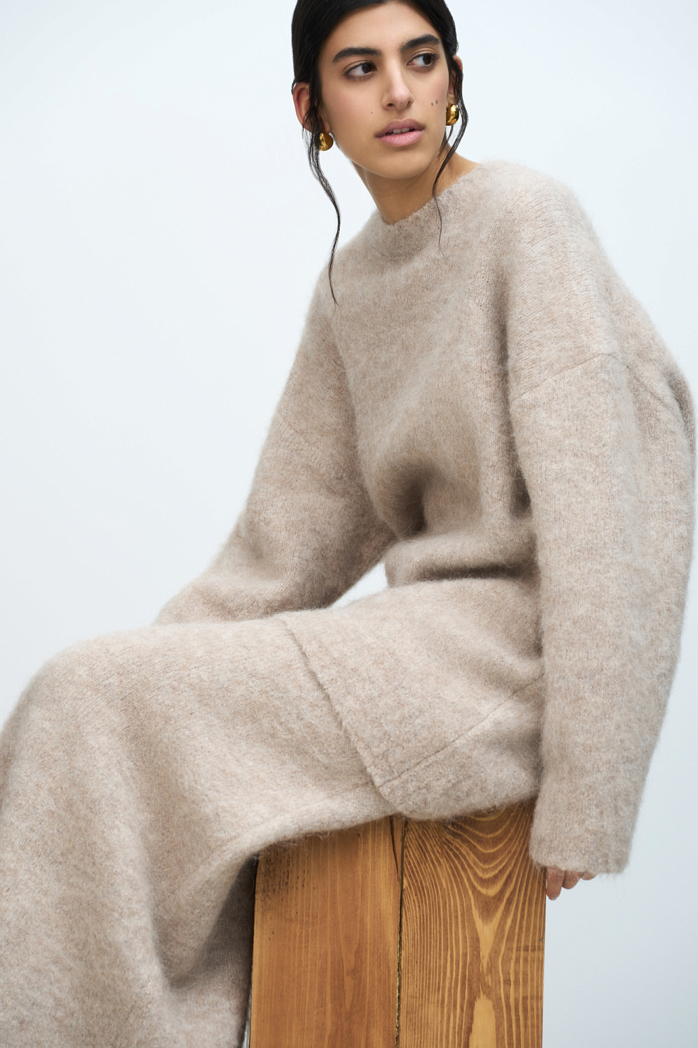 Alpaca wool knitted jumper. Oversized model with dropped shoulder line and ribbed edges.