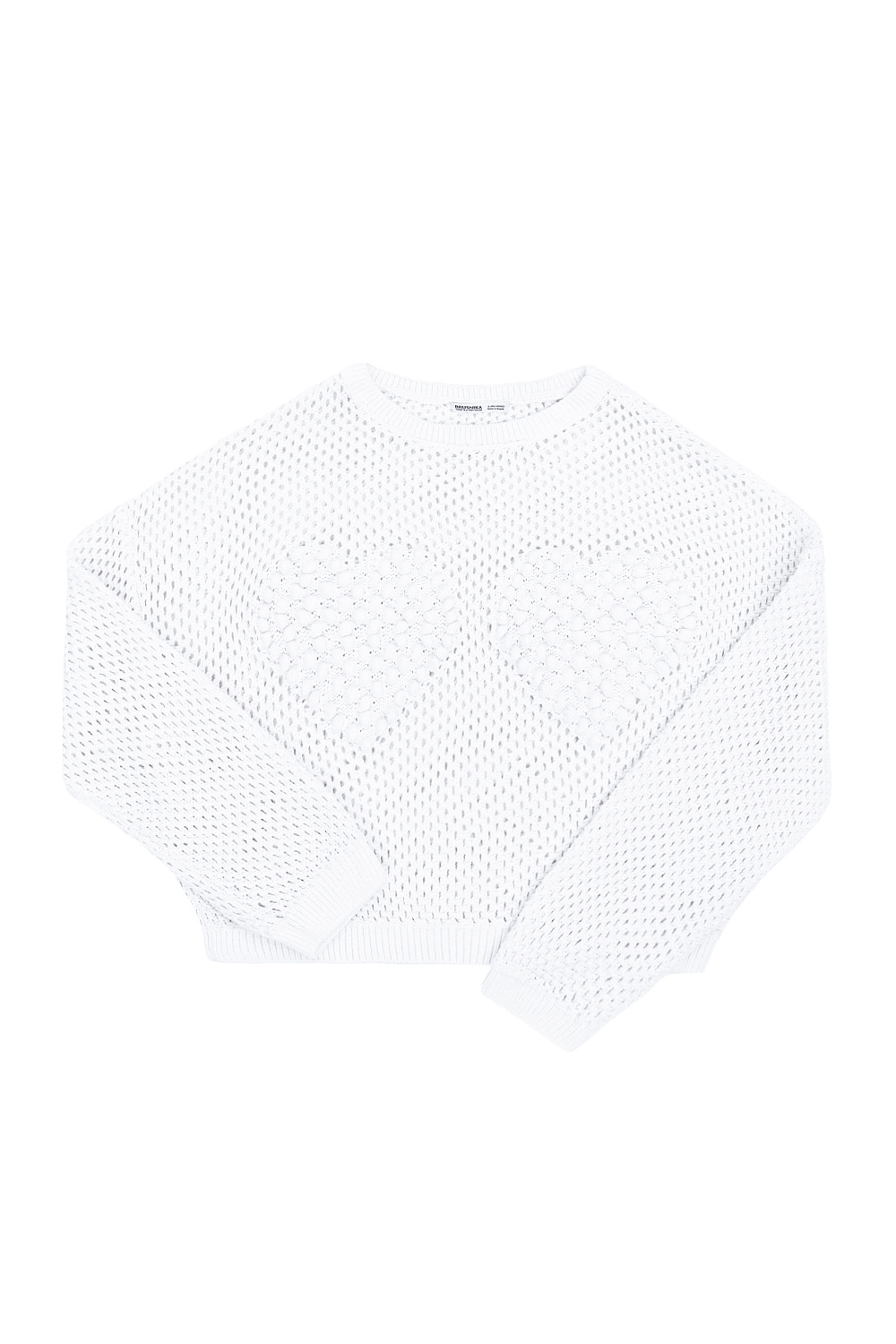 Cotton knitted jumper. Loose silhouette model with dropped shoulders and hearts on the chest.
