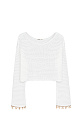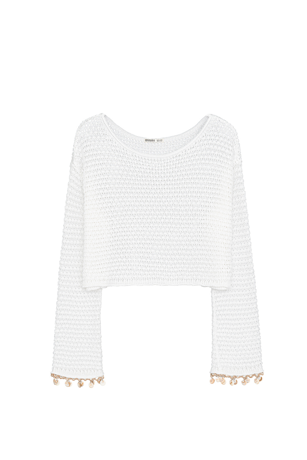 Croped jumper with long sleeves decorated with beads. You can complete the look with a skirt in the same style.