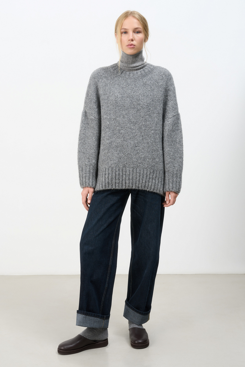 Alpaca wool knitted jumper. Loose silhouette model with dropped shoulder line. The edges of the product are ribbed.