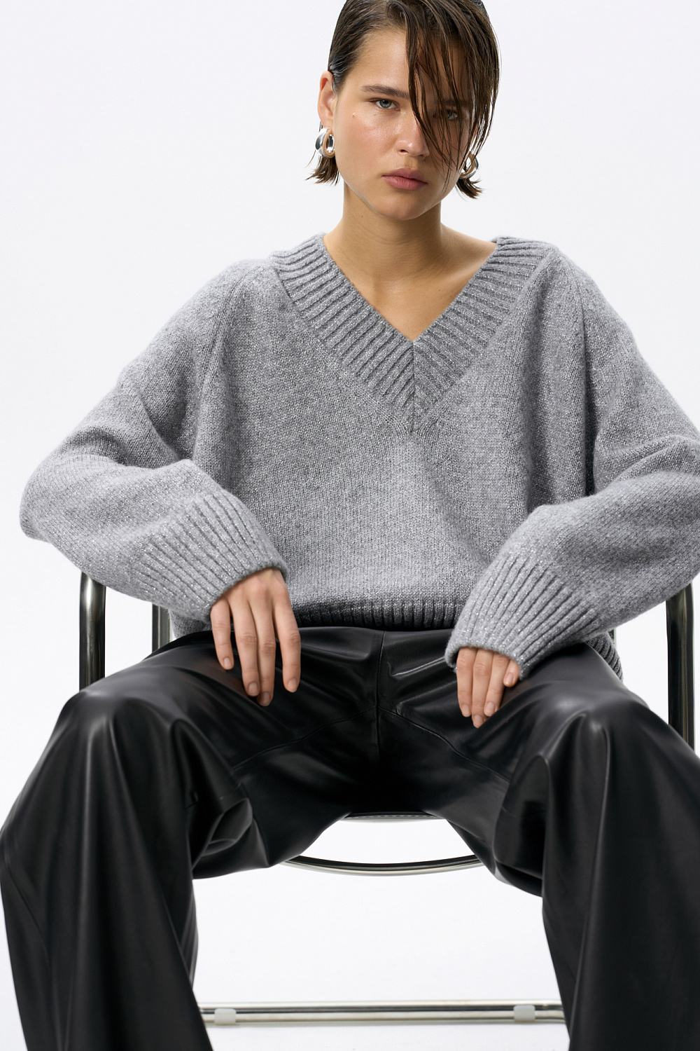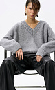 Knitted jumper made of merino wool with lurex. Loose silhouette model with V-neck.
