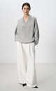 Knitted jumper made of alpaca wool with the addition of lurex. Model with a V-neck, dropped shoulders and decorative padding on the cuffs. The product is decorated with sequins.