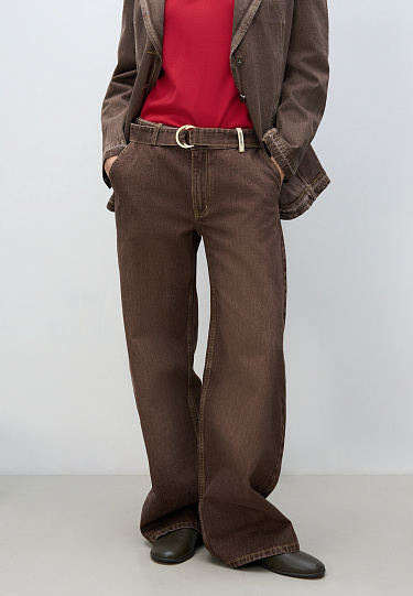 Knitted jumper made of cotton with added elastane. The model has a loose silhouette with dropped shoulders and a round neckline. The product is decorated with rolls along the bottom and on the cuffs of the sleeves.