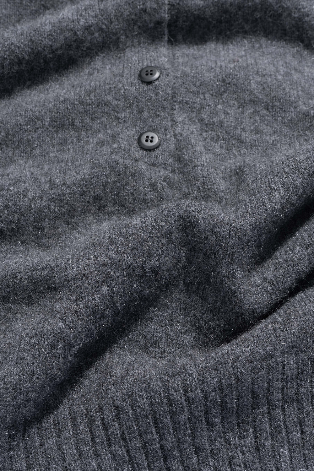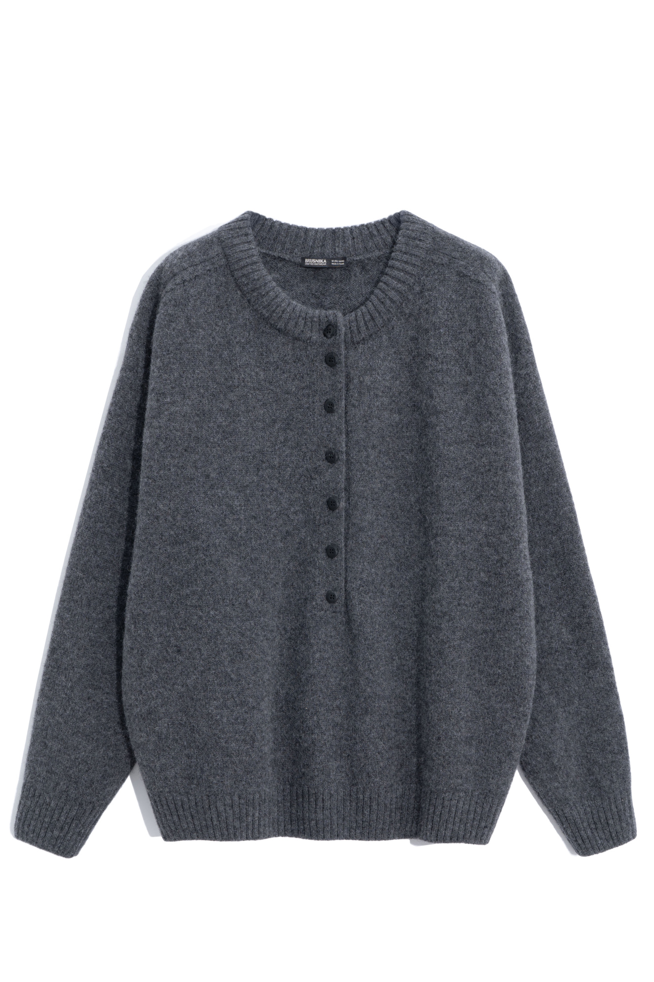 Knitted jumper made of 100% yak wool. Loose silhouette model with a knitted round neckline and a button placket. The hem and sleeve cuffs are ribbed.