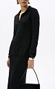 Knitted jumper with polo collar. Loose silhouette model with dropped shoulder line. The product is made of yarn with a metallic sheen effect.