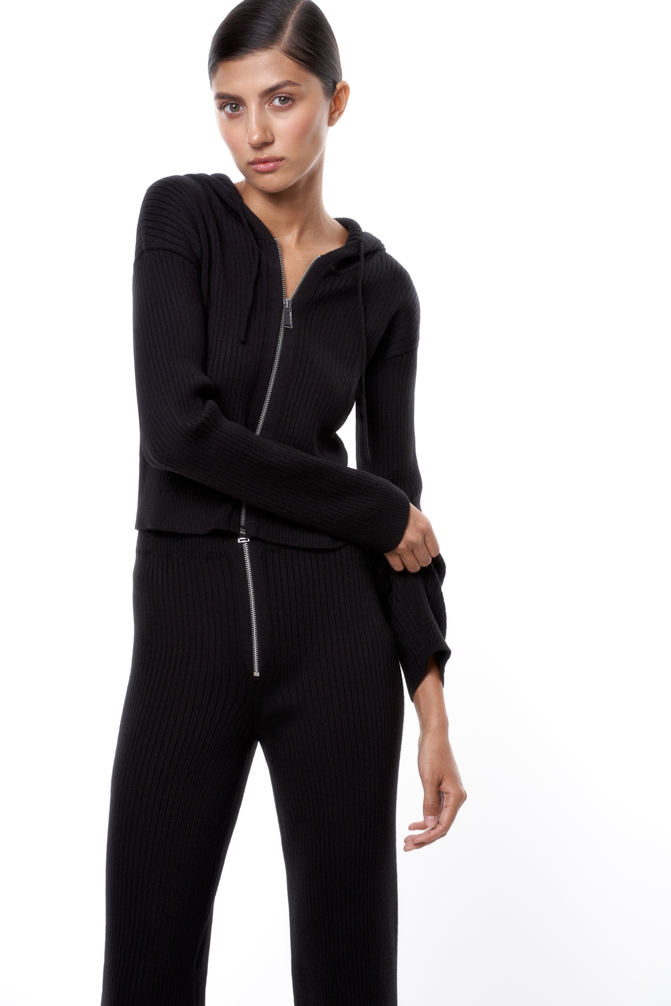 Rib knit cardigan with zipper