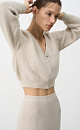 Zip-up cropped bomber jacket with V-neck. The yarn contains 40% natural fox down making the bomber jacket warm, soft and lightweight.