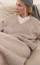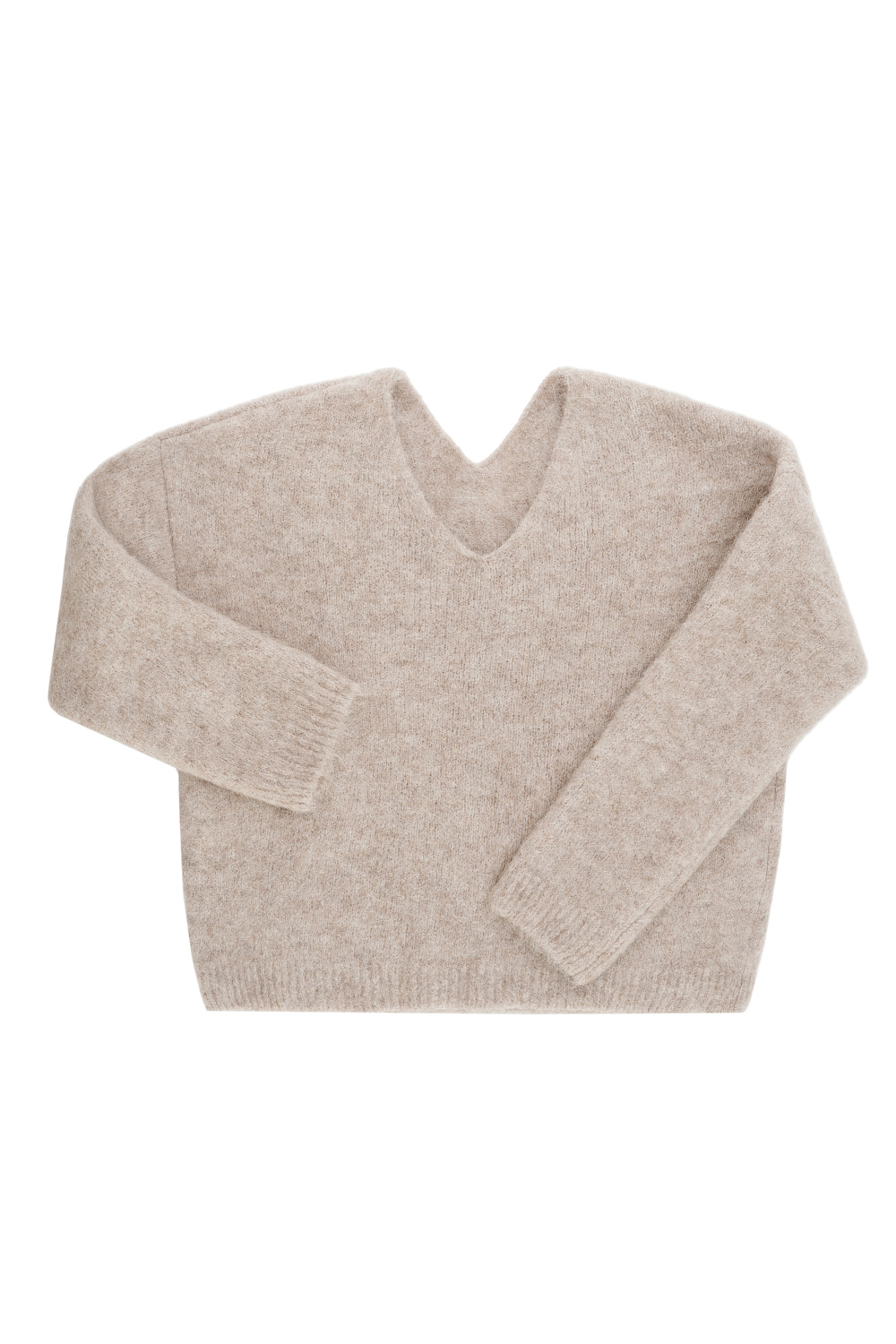 Alpaca wool cropped jumper. Loose silhouette model with V-neck and dropped shoulders. A product with a pronounced fleecy texture.