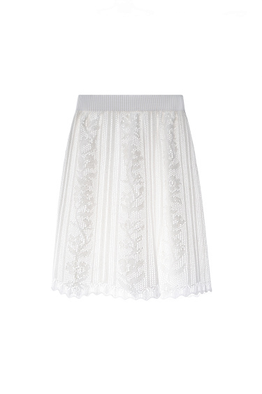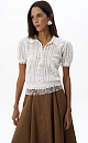 Knitted viscose T-shirt with sequins. The product is made of openwork weave with a design in the form of a floral ornament. Model with a polo collar, sweetheart button placket and short sleeves.