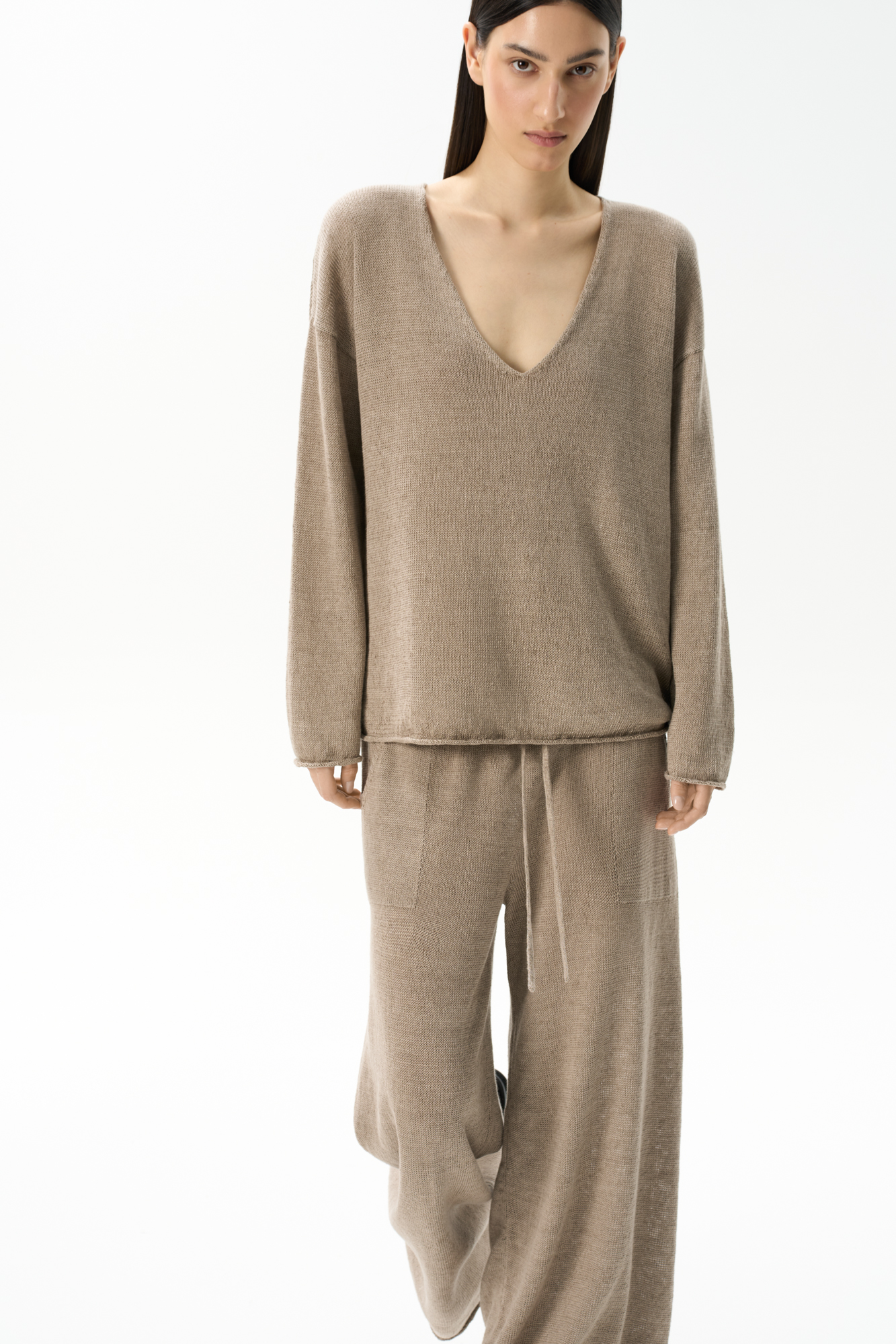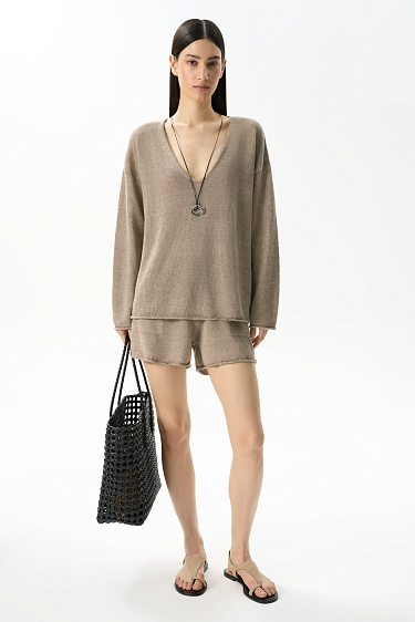 Fitted knitted jumper with a cut-out, long sleeves and a label at the side.