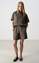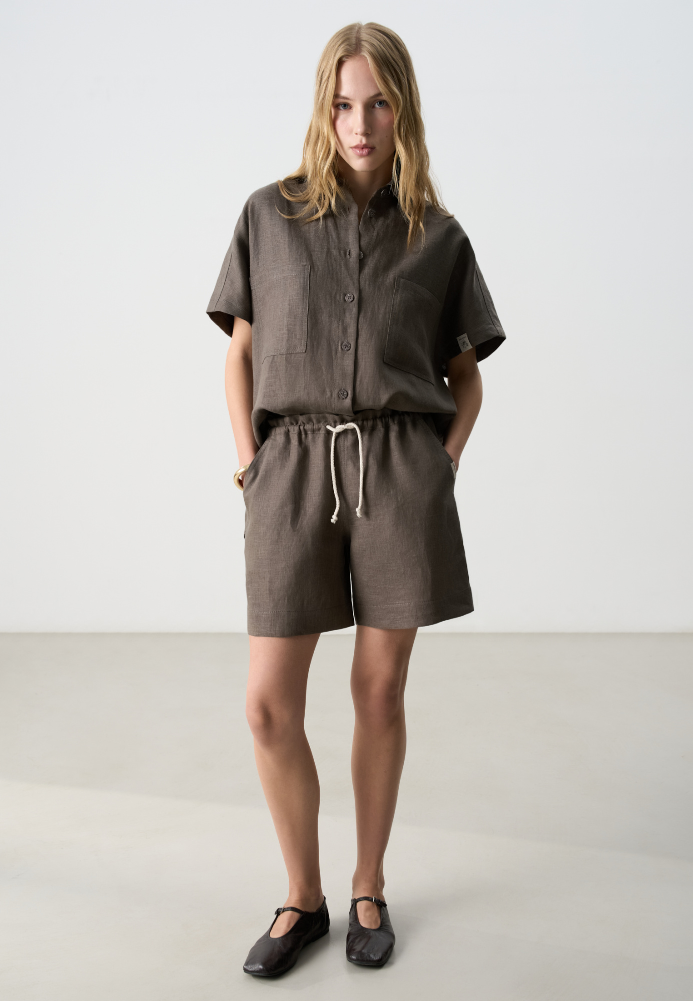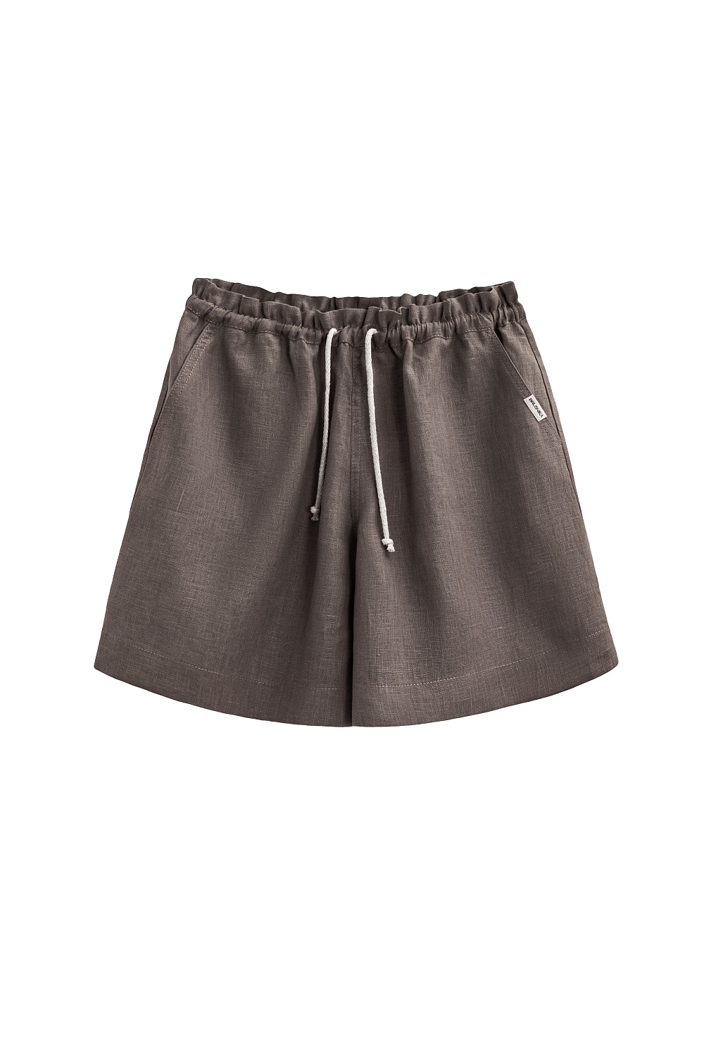 Short shorts made of 100% linen. The model has a loose fit, with a drawstring belt and side pockets.