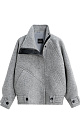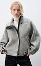 Woolen bomber jacket with a stand collar. Loose-fitting model with button-down cuffs and hem, zip closure and magnetic buttons under the eco-leather-decorated placket. The bomber jacket is lined.