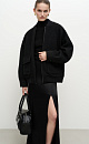 Oversized wool bomber jacket. Ribbed neckline and hem. Two front pockets with flaps. Front zip fastening.