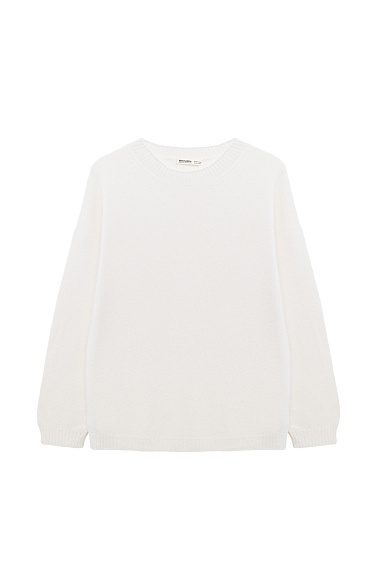 Oversized wool bomber jacket. Ribbed neckline and hem. Two front pockets with flaps. Front zip fastening.