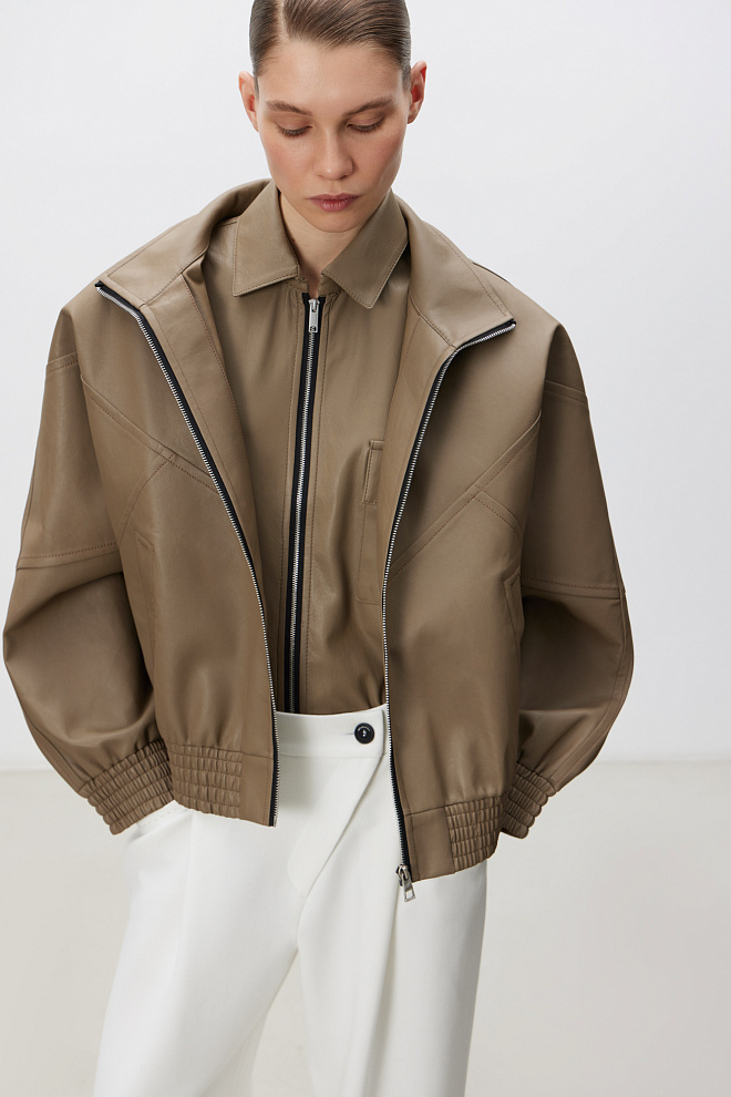 Faux leather bomber jacket