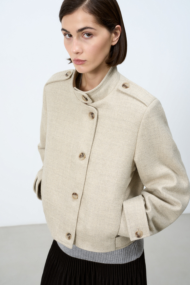 Woolen bomber jacket with a stand collar