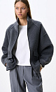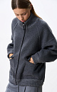 Loose-fitting wool bomber jacket. Model with dropped shoulders, a stand-up collar and two patch pockets with flaps. The collar, cuffs and hem of the product are made of thick ribbed knitwear. Zip closure. No lining.