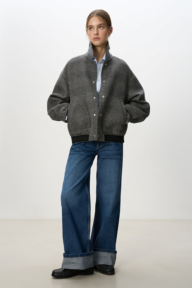 Double-sided bomber jacket made of 100% wool