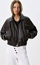Cropped bomber jacket made of eco-leather. Loose silhouette model with long sleeves, collar and two chest pockets. Zip closure. The product is lined.
