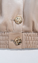 Velvet bomber jacket with stand-up collar. Loose fit model with dropped shoulders and side pockets. The cuffs of the sleeves and the bottom of the product are made with elastic. Accent button closure.